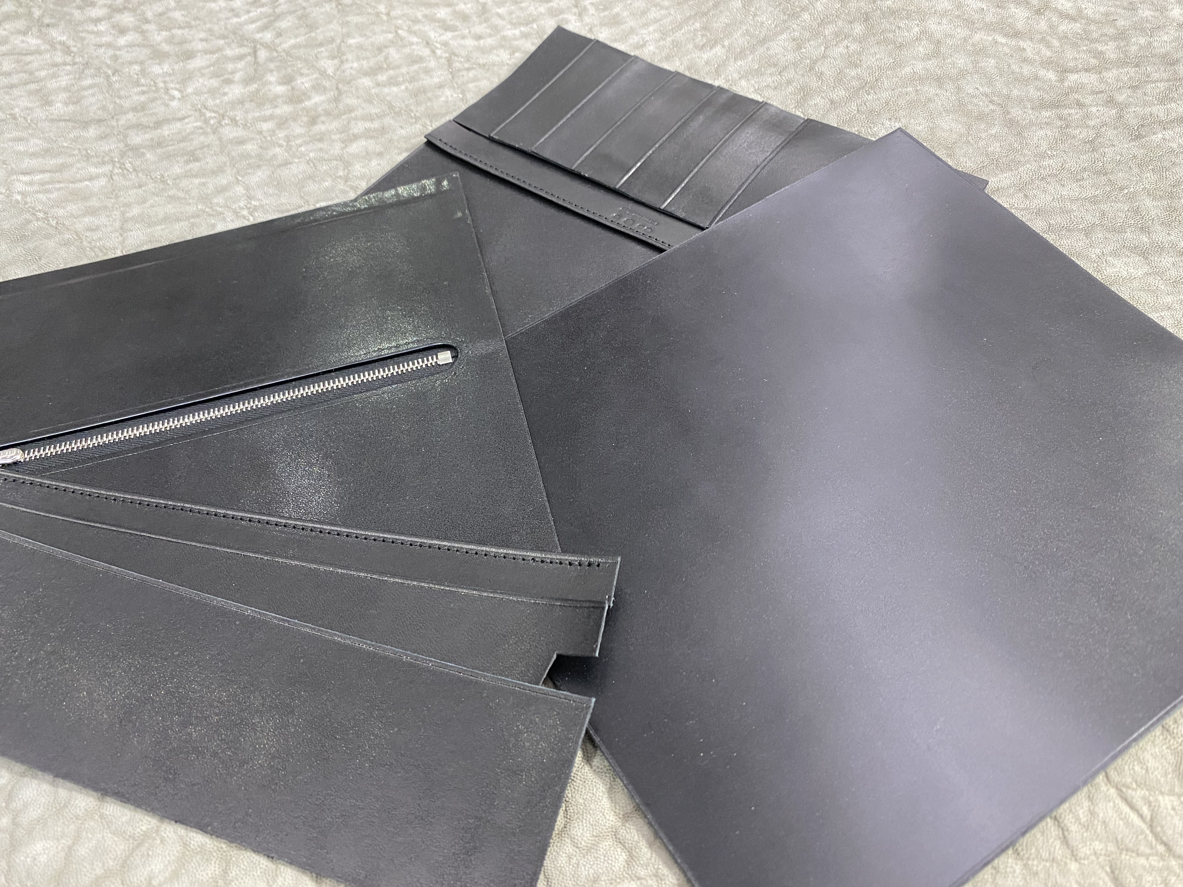 オイル染め染色で芯通し仕上げされたオイルコードバンのブラックは、ほんのりと繊維の質感がわかり、生成り(ナチュラル地)をベースに顔料を塗り込みながら仕上げられた顔料磨き上げコードバンのブラックとはまた違う雰囲気を感じさせてくれます。