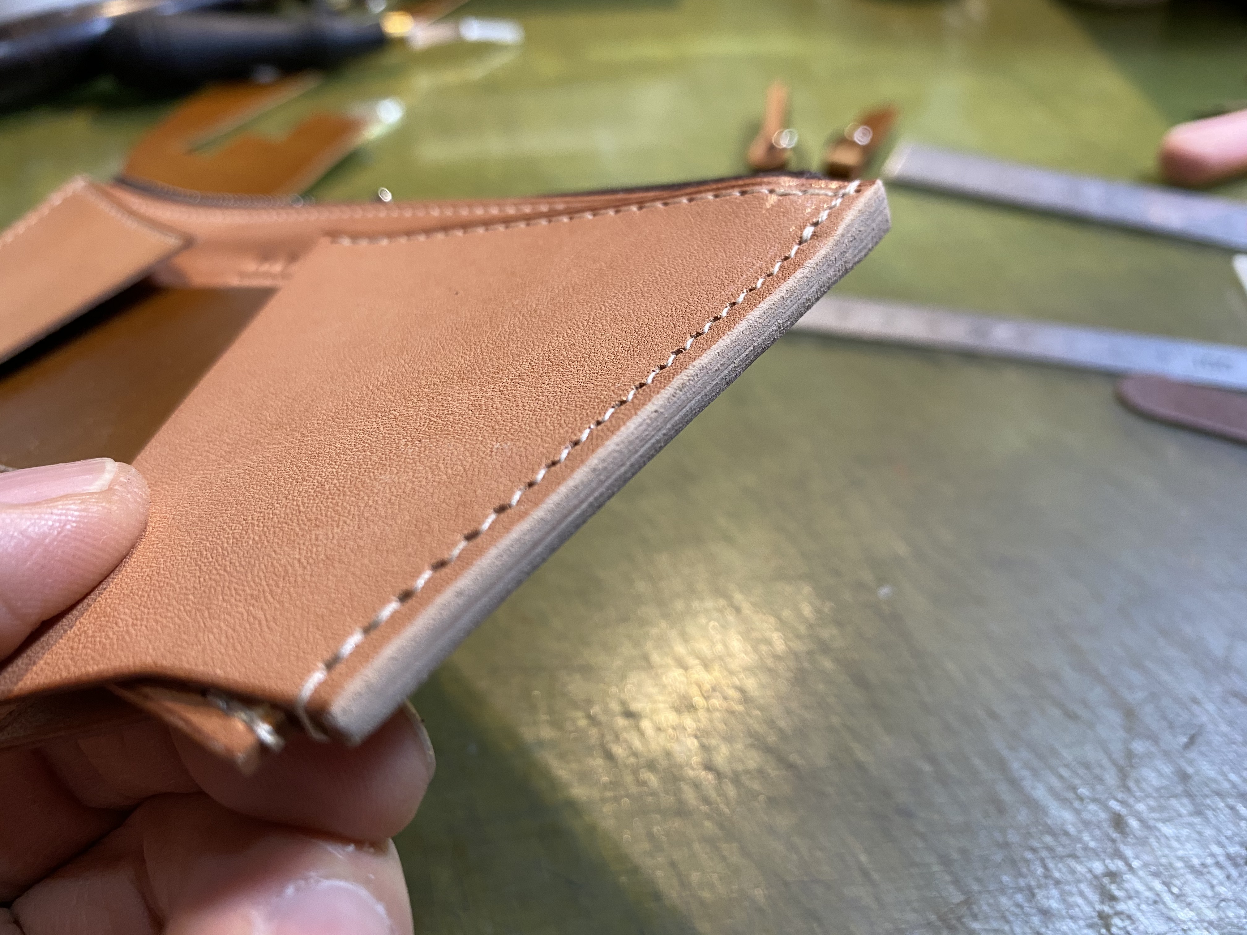 これより最終工程の内装と外装の組み込み作業に入ります。そしてその後は、無二の特徴である繊細で美しいコバ処理&磨きコバ仕立てを施して行きます。